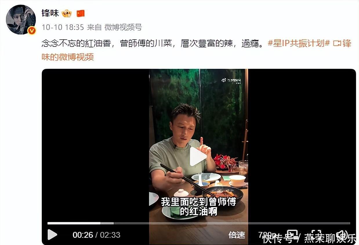 在10月10号的时候,霆锋哥还在自己的社交账号上更新了动态,这次的他跑到了川菜店里,品尝着被誉为八大菜系的川菜。在吃每道菜肴之后的霆锋哥都会对该道菜大加点评,看到屏幕中的菜肴,偏爱吃辣的小编也是不禁流下了口水。