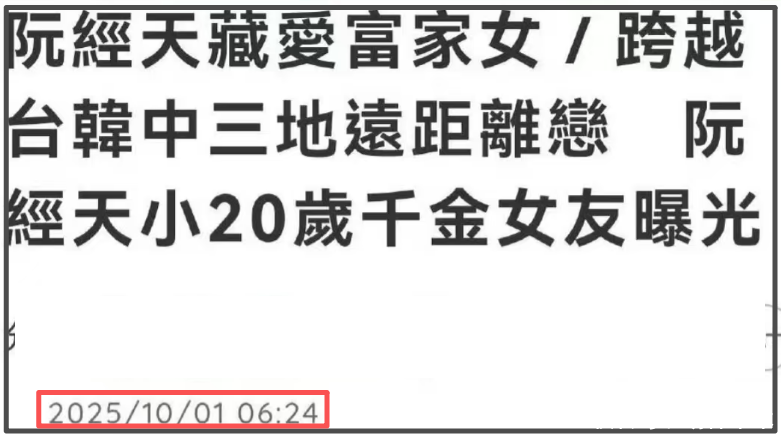 看到阮经天与女友在韩国的同框照,有网友翻出了阮经天恋情相关的台媒报道。在10月份,台媒称阮经天与内地的徐姓混血富二代谈恋爱了,女方在韩国留学,两人年龄相差近20岁,已稳定交往超过1年,关于这段恋情,阮经天经纪人未曾否认,仅表示“谢谢关心,关于私生活不做回应”。