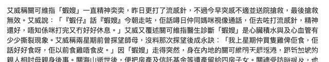 突然离世,生前曾打流感疫苗 虾嫂的离世,来得太过突然。 关海山的徒弟艾威第一时间向媒体证实了死讯,言语间满是惋惜。 知情人透露,虾嫂身体一直还算硬朗,离世前一天刚去接种了流感疫苗,没想到隔天就出了意外。 半个月前,艾威还特意带着土鸡去探望她。